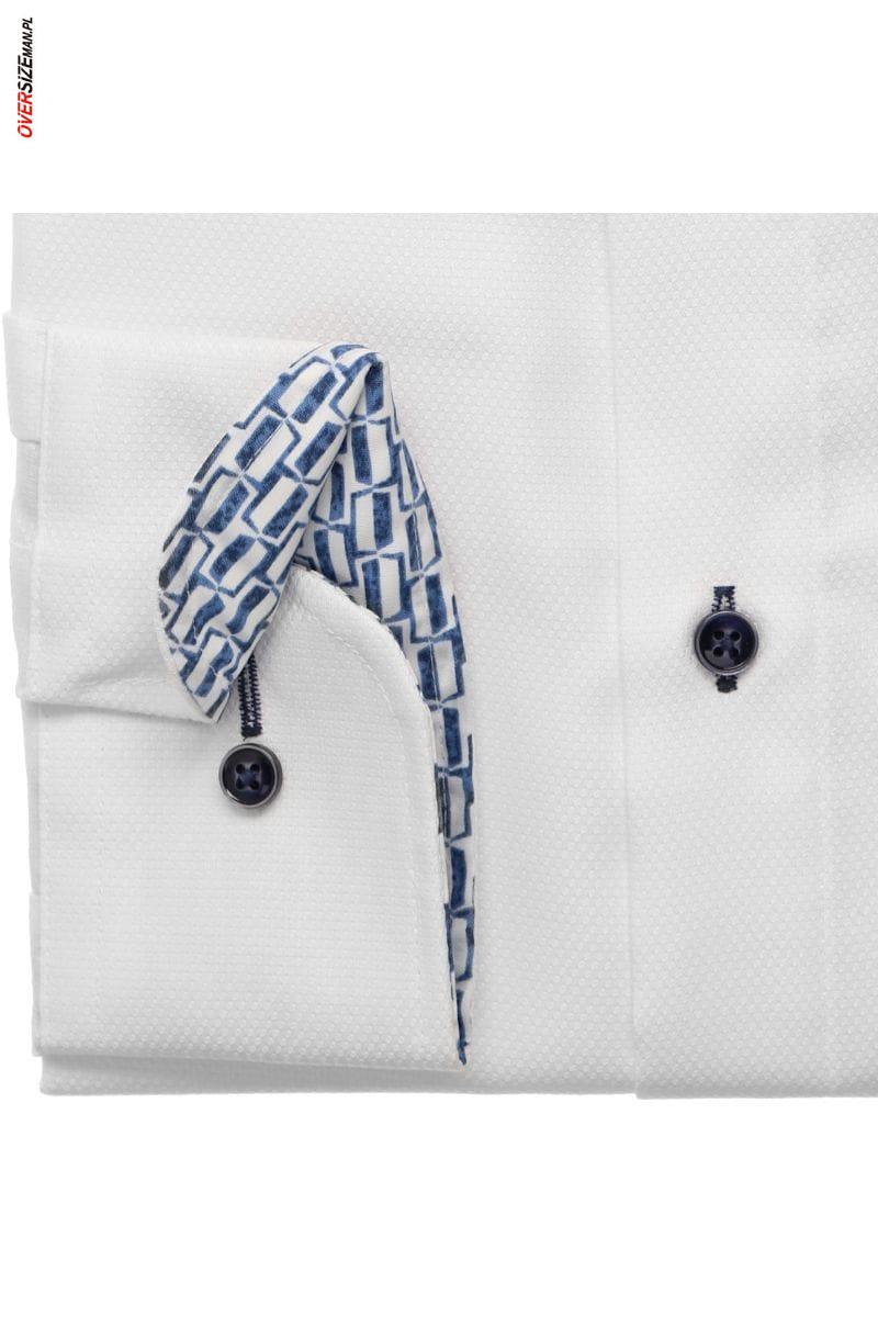 Kontrastowe granatowe guziki nadają koszuli nowoczesnego charakteru i subtelnie podkreślają detal eleganckiej garderoby. Dzięki przemyślanemu krojowi koszula jest komfortowa nawet przy większych sylwetkach, co czyni ją świetnym przykładem odzieży męskiej w dużych rozmiarach.