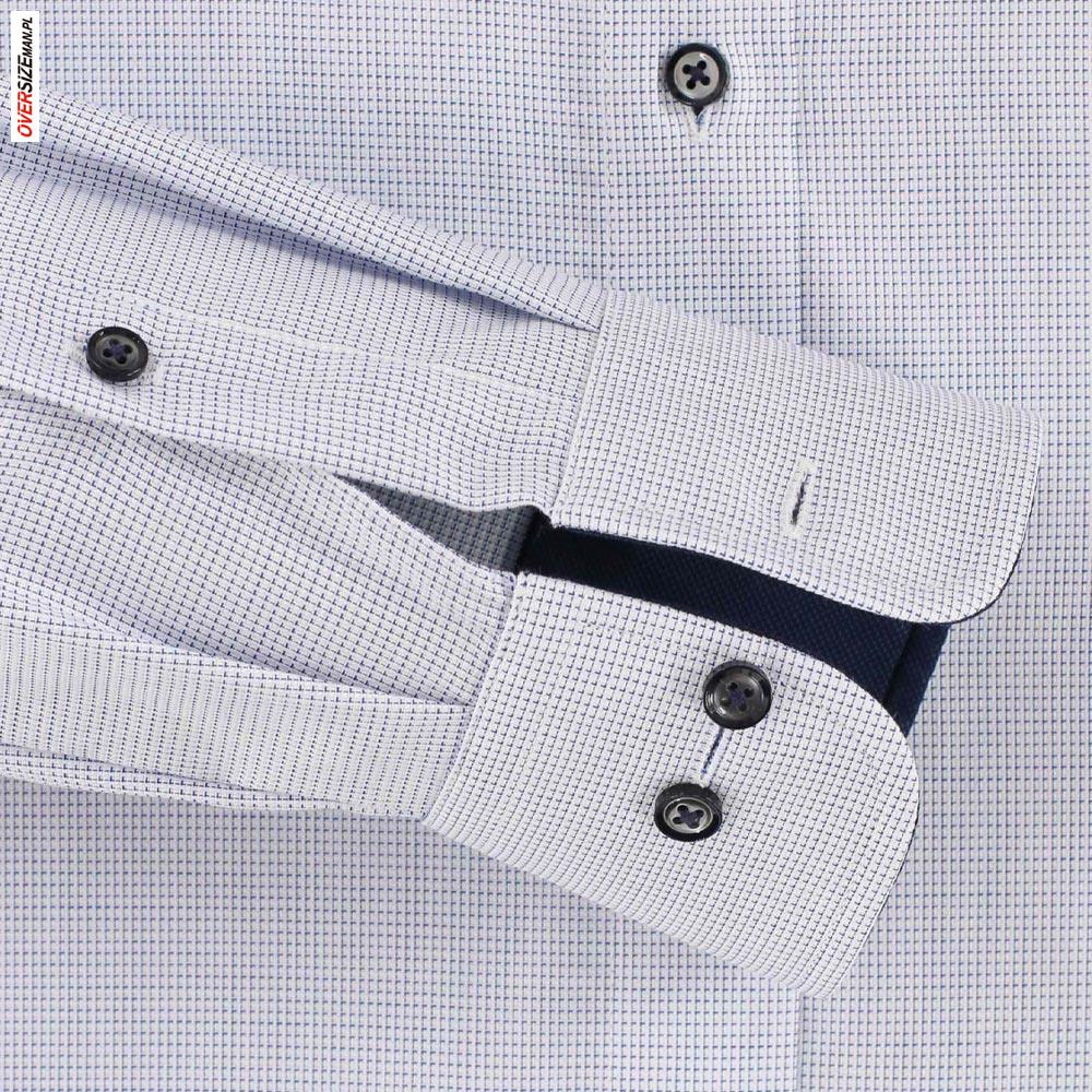 Koszula należy do linii NON IRON, dzięki czemu drobne zagniecenia samoczynnie prostują się po założeniu, zapewniając zawsze nienaganny wygląd. Posiada klasyczny kołnierzyk typu button-down z granatowym podbiciem oraz ciemne guziki, a rękawy zakończone są standardowymi mankietami. Błękitno-granatowa, delikatna kratka nadaje koszuli eleganckiego i uniwersalnego charakteru. Szukając innych wysokiej jakości koszul w dużych rozmiarach, warto odwiedzić sklep z dużą odzieżą męską.
