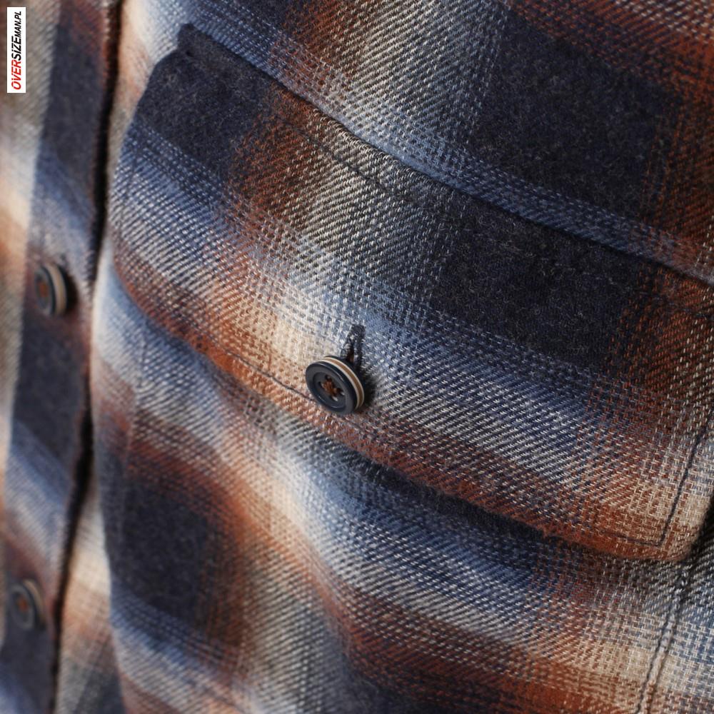 Koszula wyróżnia się modną, wielobarwną kratką w odcieniach niebieskiego i brązu oraz praktycznymi, podwójnymi kieszeniami na piersiach. Doskonale komponuje się z jeansami, chinosami czy innymi casualowymi spodniami, sprawdzając się zarówno w codziennych, jak i bardziej stylowych zestawieniach. Produkt świetnie wpisuje się w kategorię duża koszula męska, łącząc funkcjonalność z ponadczasowym designem.