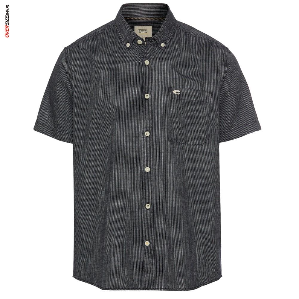 Czarna koszula męska Camel Active w drobny, biały prążek to stylowa i funkcjonalna propozycja dla mężczyzn noszących większe rozmiary, którzy chcą postawić na wyrazisty, a jednocześnie uniwersalny element garderoby. Uszyta w 100% z bawełny zapewnia dobrą cyrkulację powietrza, miękkość i wysoki komfort noszenia przez cały dzień. Kontrastowy wzór w cienkie paski nadaje koszuli charakteru i sprawia, że świetnie prezentuje się w codziennych oraz bardziej uporządkowanych stylizacjach.