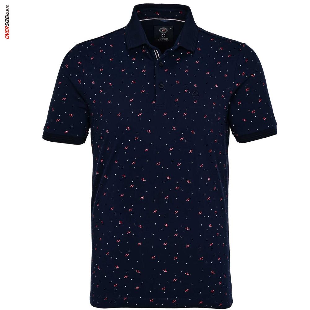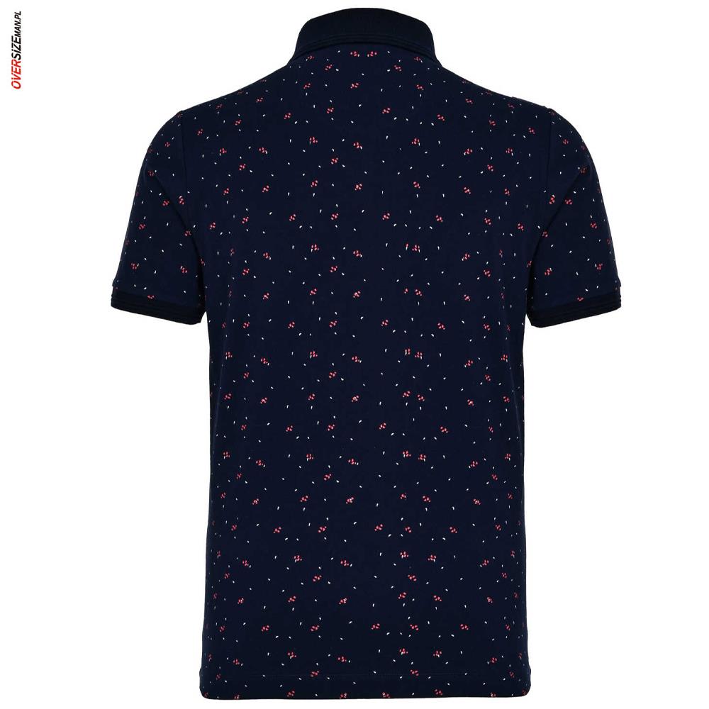 Granatowa koszulka polo męska z subtelnym wzorem w drobne czerwono-białe elementy to udane połączenie klasyki z nowoczesnym akcentem, stworzone z myślą o mężczyznach noszących większe rozmiary. Model wykonany z wysokiej jakości, miękkiej bawełny z dodatkiem elastanu zapewnia wysoki komfort noszenia, elastyczność oraz swobodę ruchów przez cały dzień. To praktyczna odzież męska w dużych rozmiarach, która dobrze sprawdza się w codziennym użytkowaniu.