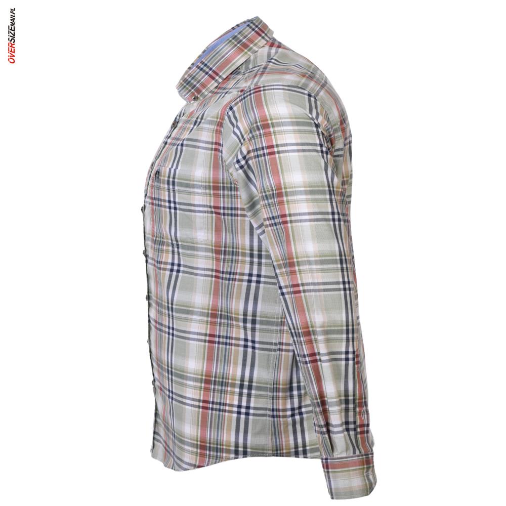 Regularny krój zapewnia swobodę ruchów, a wysokiej jakości materiał gwarantuje komfort przez cały dzień. Dzięki oryginalnemu zestawieniu kolorów, koszula znakomicie sprawdzi się zarówno w codziennych stylizacjach, jak i tych bardziej formalnych – w połączeniu z chinosami, jeansami lub eleganckimi spodniami stworzy wyjątkowy, modny look dla większych sylwetek.