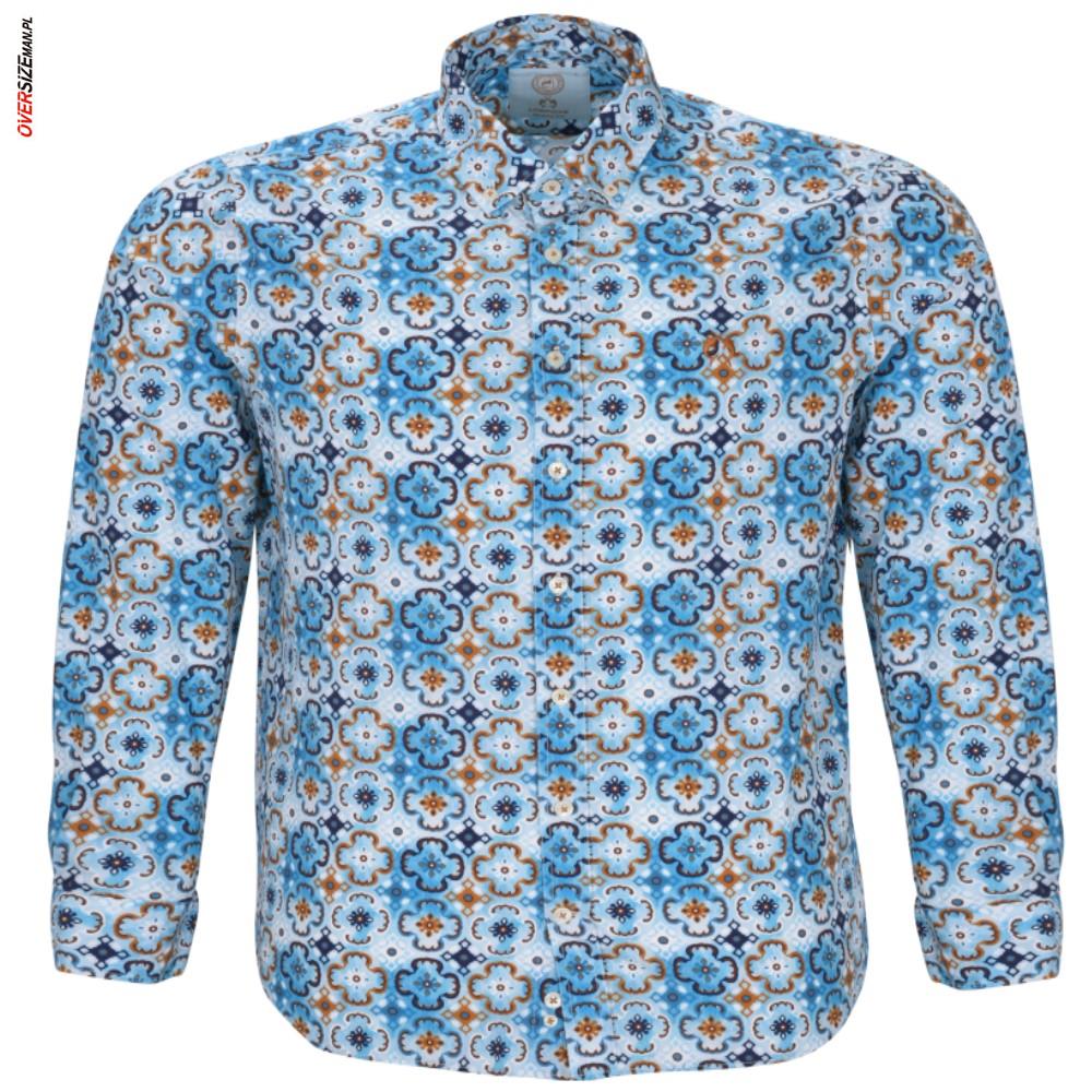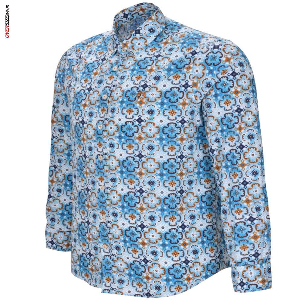 Kolorowa koszula niemieckiej marki Campione to propozycja dla mężczyzn, którzy wybierają odzież męską w dużych rozmiarach i cenią połączenie wyjątkowego designu z komfortem noszenia. Model przyciąga uwagę oryginalnym wzornictwem w mocnych odcieniach błękitu, granatu i pomarańczowego, co sprawia, że koszula doskonale sprawdzi się w wiosenno-letnich stylizacjach. Prosty krój zapewnia swobodę ruchów i wygodę nawet przy większych sylwetkach, czyniąc ją idealną koszulą męską XXL do casualowych i półformalnych zestawów.