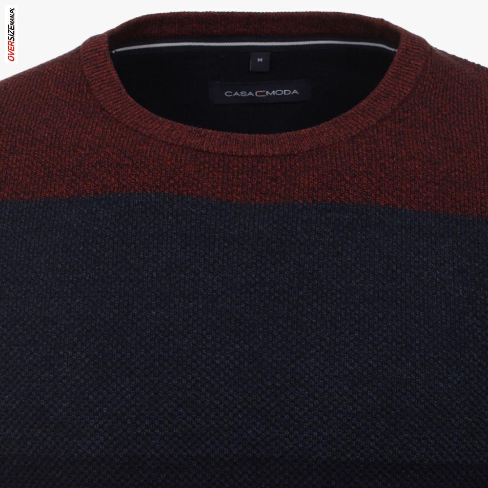 Granatowy sweter niemieckiej marki Casa Moda to propozycja dla mężczyzn szukających odzieży męskiej w dużych rozmiarach, łączącej klasyczny styl z komfortem noszenia. Model o prostym, regularnym kroju doskonale sprawdzi się w codziennych oraz półformalnych stylizacjach, gwarantując swobodę ruchów i wygodę przez cały dzień.