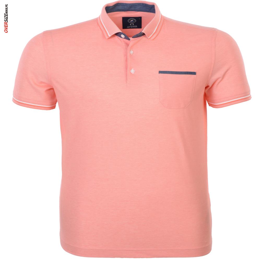 Koralowa koszulka polo męska niemieckiej marki Campione to elegancka propozycja dla mężczyzn poszukujących odzieży męskiej w dużych rozmiarach.