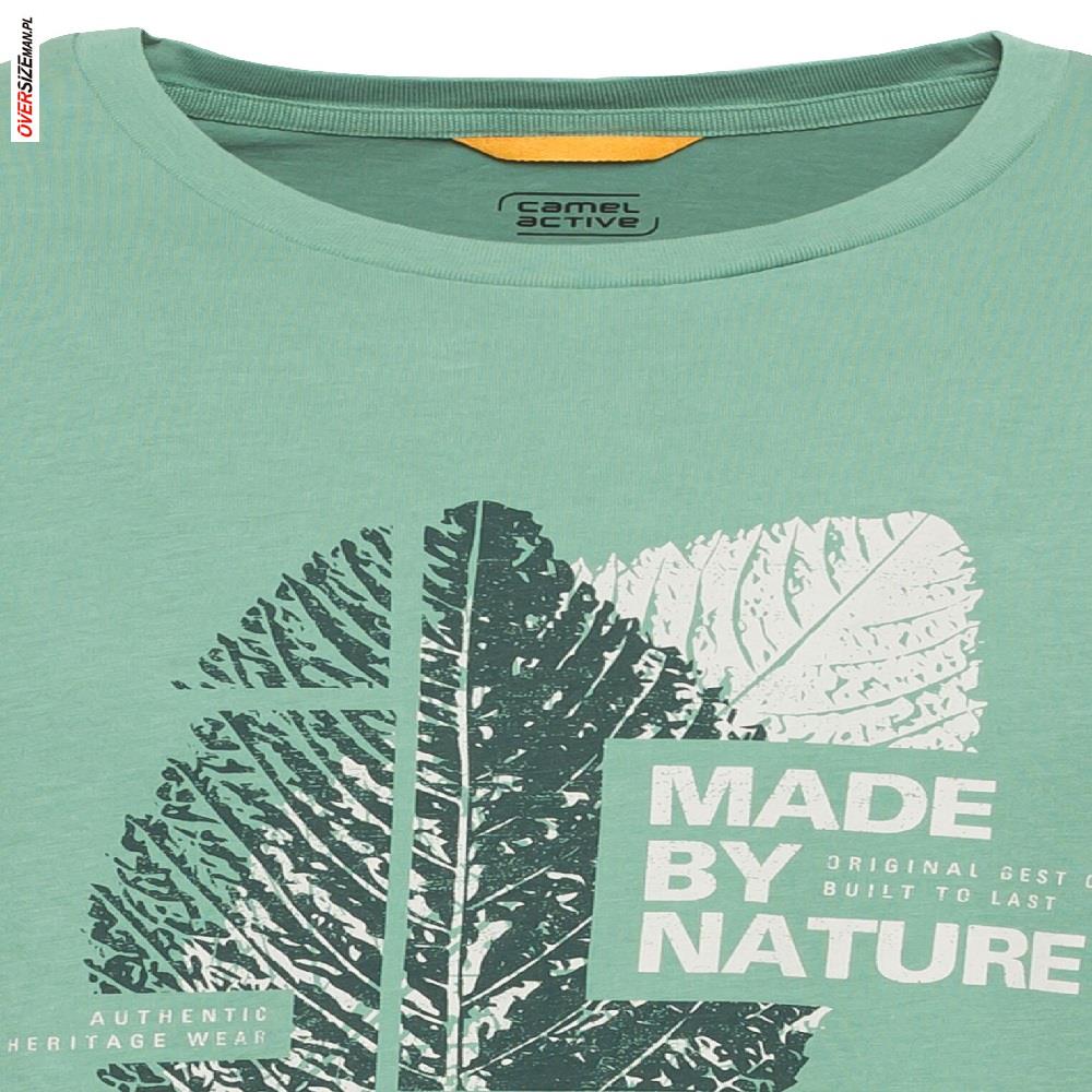 Klasyczny T-shirt męski Camel Active w dużych rozmiarach to idealna propozycja dla mężczyzn ceniących wygodę, jakość i swobodny styl. Zielony kolor w połączeniu z roślinnym nadrukiem na froncie nawiązuje do outdoorowego charakteru marki i świetnie wpisuje się w codzienne, casualowe stylizacje. Prosty, standardowy krój zapewnia komfort noszenia i dobre dopasowanie do większej sylwetki, bez uczucia ucisku czy ograniczania ruchów.